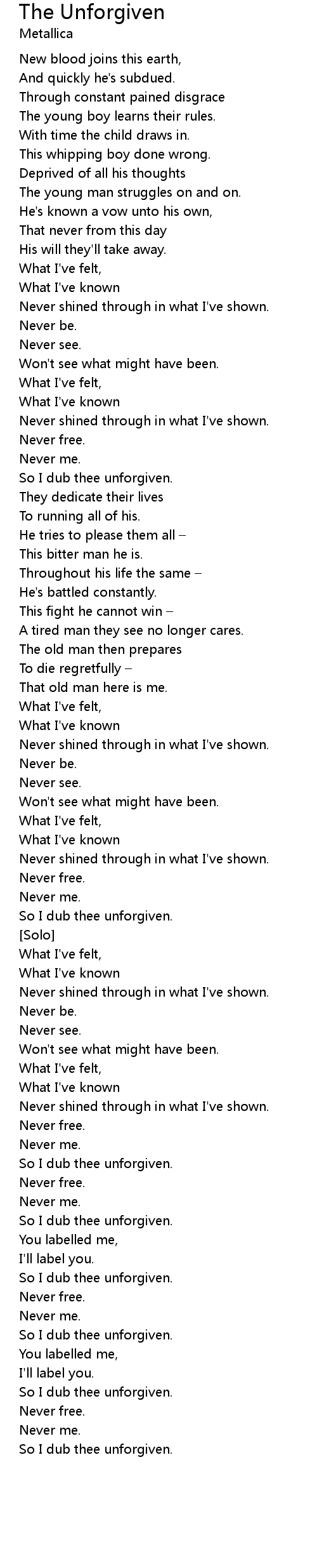 | Song | The Unforgiven |