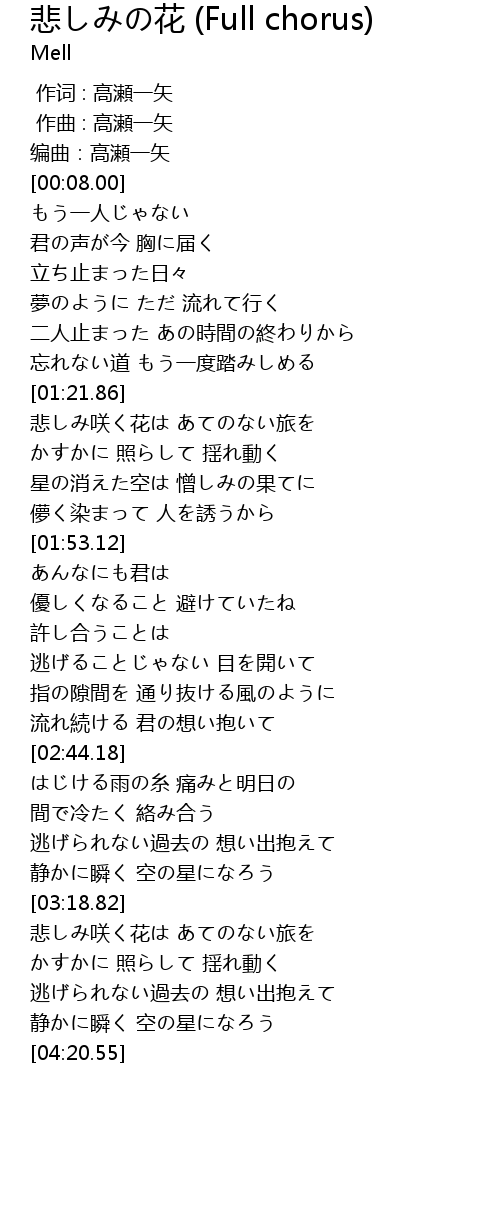 | [03:46.23] | 悲しみ咲く花は あてのない旅を |