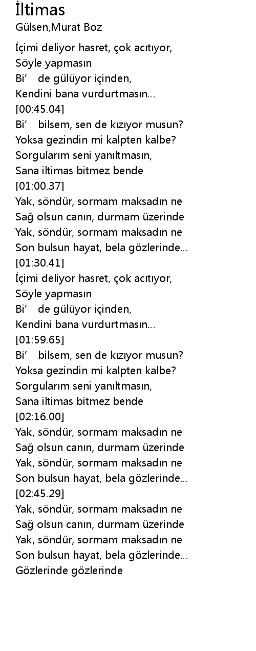 | [02:37.77] | Son bulsun hayat, bela gözlerinde… |