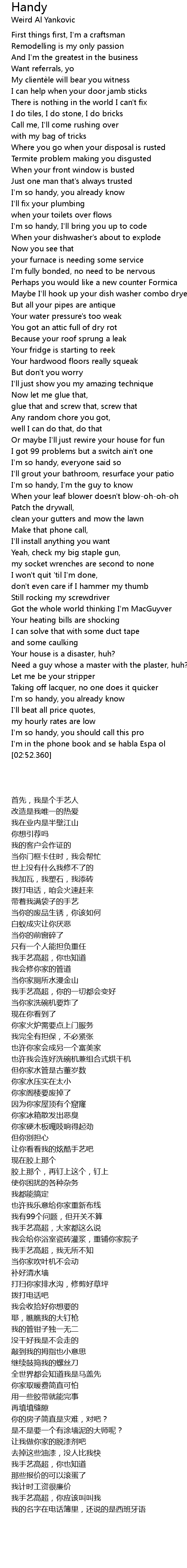 | [02:42.560] | I' m so handy, you should call this pro |