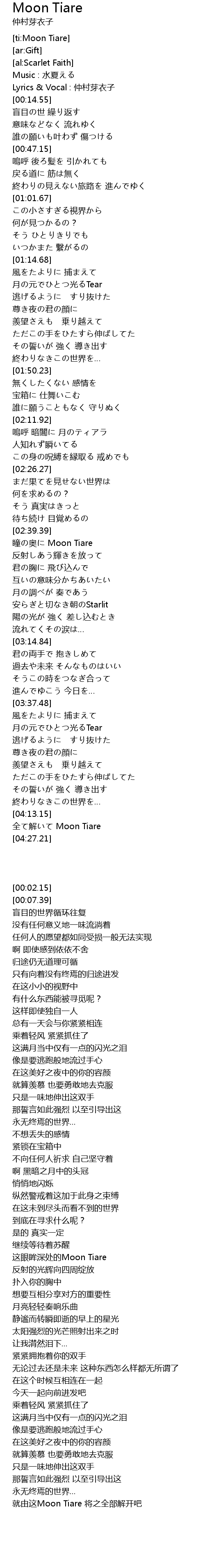 | [02:12.26] | 嗚呼 暗闇に 月のティアラ |