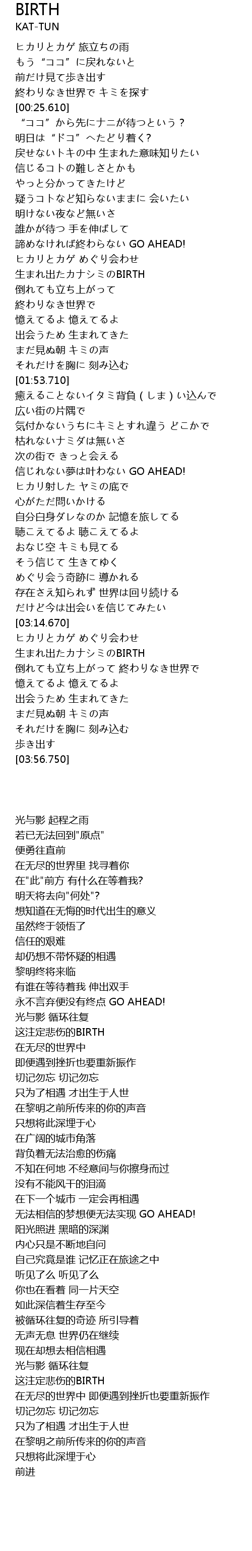 | [03:22.210] | 生まれ出たカナシミのBIRTH |