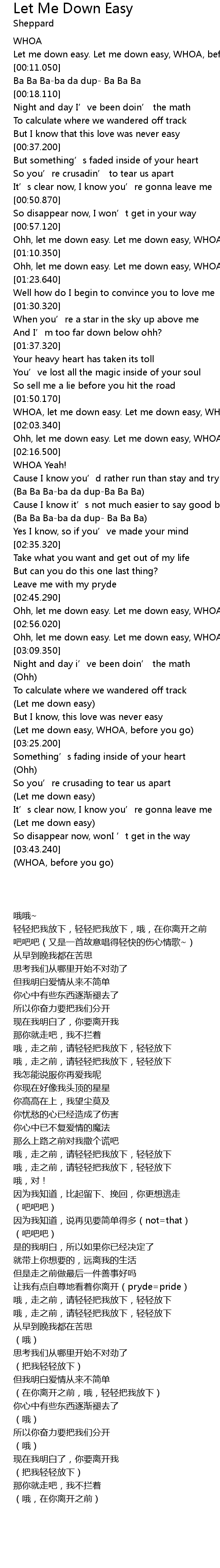 | [02:59.520] | Ohh, let me down easy. Let me down easy, WHOA, before you go |