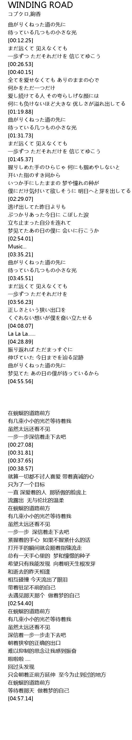 | [04:41.20] | 曲がりくねった道の先に |