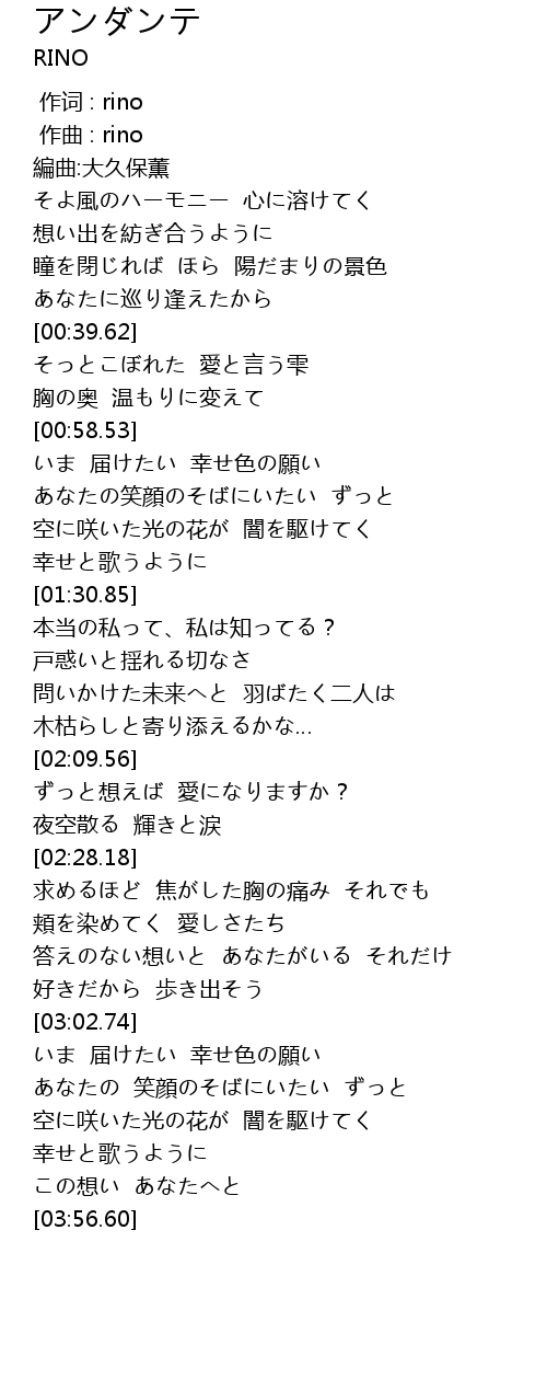 | [03:16.38] | いま 届けたい 幸せ色の願い |