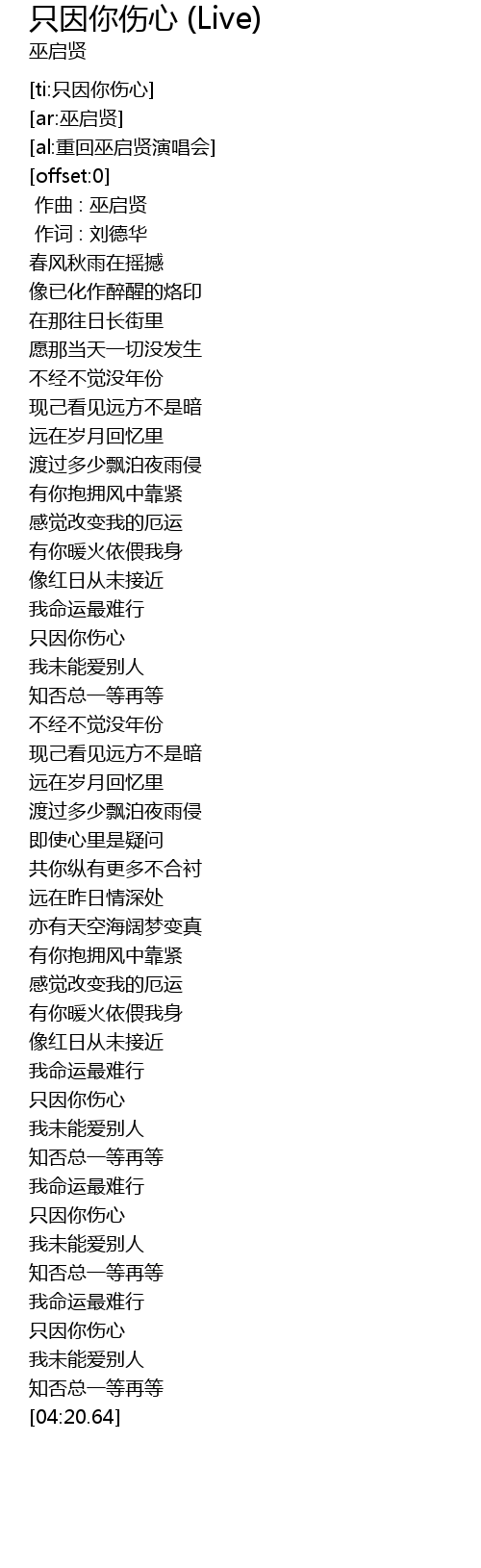 | [03:34.69] | zhǐ yīn nǐ shāng xīn |