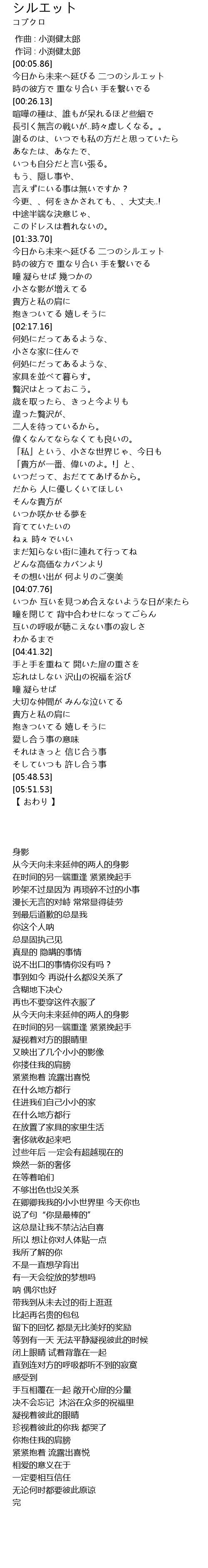 | [01:35.01] | 今日から未来へ延びる 二つのシルエット |