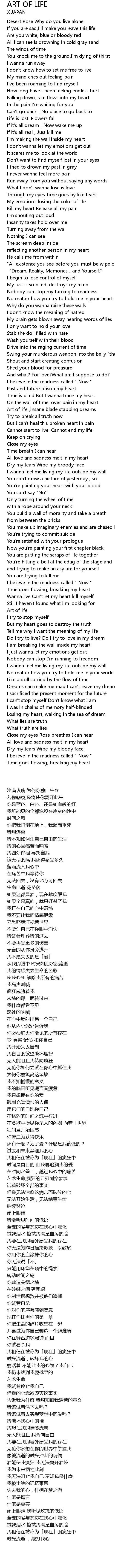 | [09:15.480] | Art of life ,Insane blade stabbing dreams |