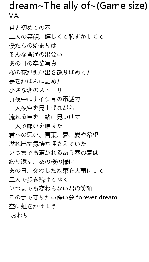 | Song | dream~The ally of~(Game size) |