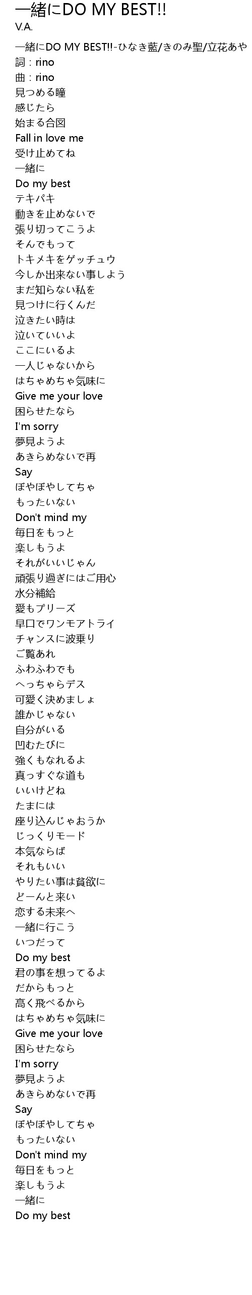 | [00:00.281] | 一緒にDO MY BEST!!-ひなき藍/きのみ聖/立花あや |