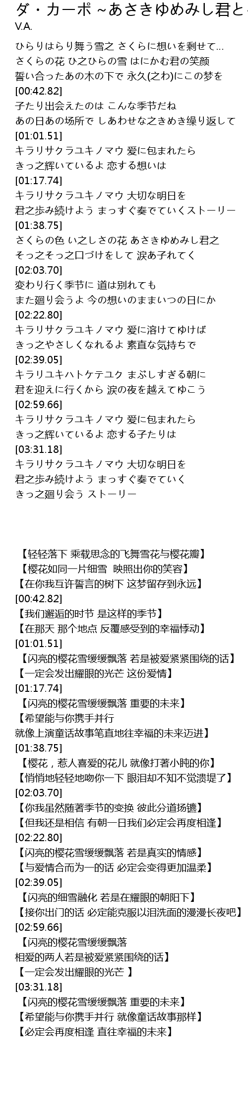 | [02:24.00] | キラリサクラユキノマウ 爱に溶けてゆけば |