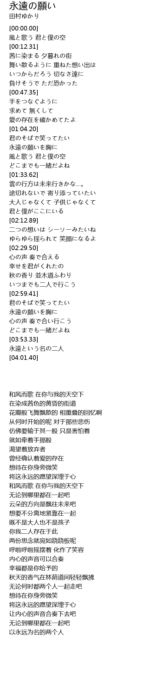 | [03:32.17] | yǒng yuǎn yuàn xiōng |
