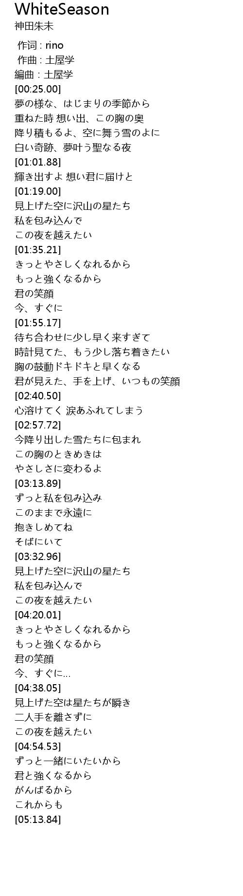 | [00:54.19] | 白い奇跡、夢叶う聖なる夜 |