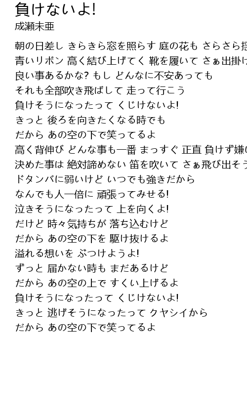 | 決めた事は 絶対諦めない 笛を吹いて さぁ飛び出そう! | |