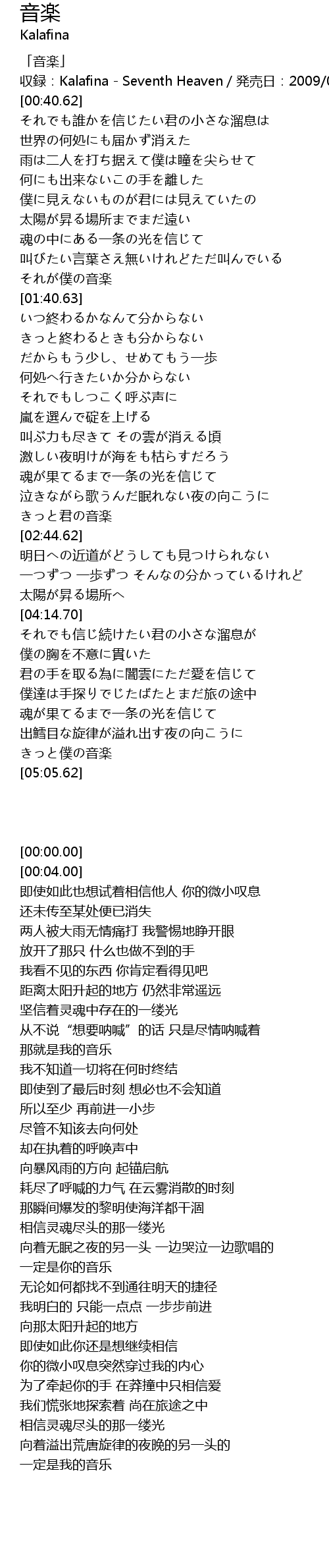 | [00:04.00] | 収録:Kalafina - Seventh Heaven/発売日:2009/03/04 |