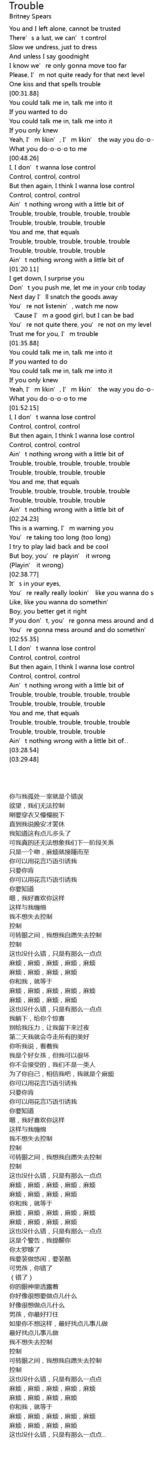 | [03:24.38] | Trouble, trouble, trouble, trouble |
