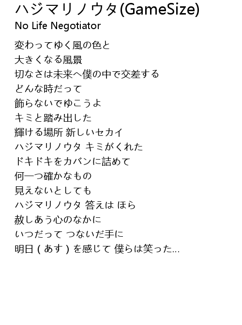 | [00:56.78] | ハジマリノウタ 答えは ほら |