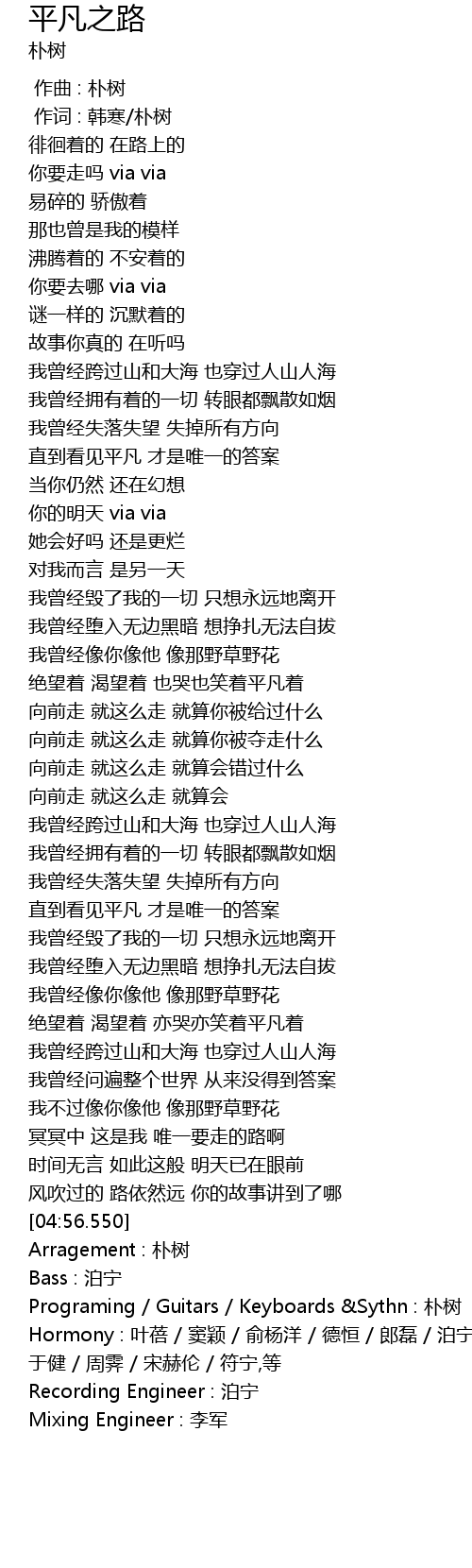 | [04:59.040] | Programing / Guitars / Keyboards &Sythn : 朴树 |