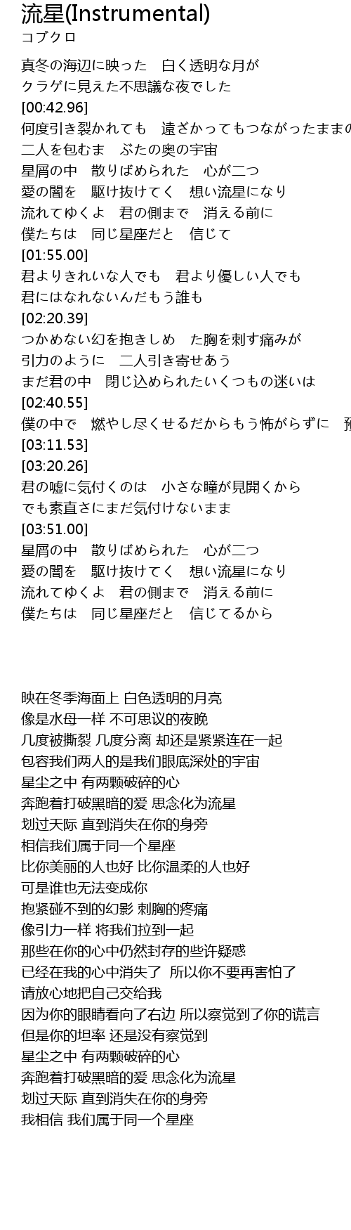 | [01:43.00] | 僕たちは 同じ星座だと 信じて |