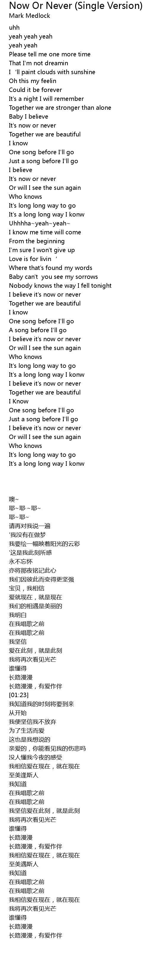 | [02:36] | I believe it' s now or never |