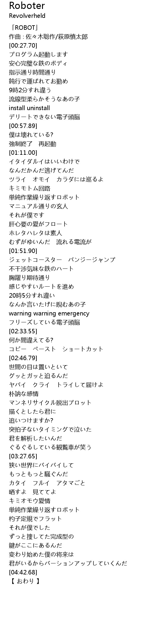 | [00:33.12] | 安心完璧な鉄のボディ |