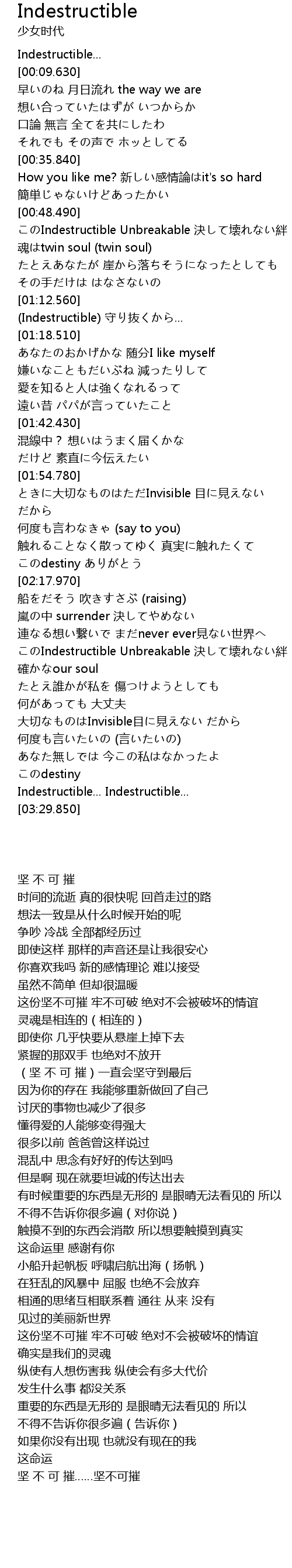 | [00:48.910] | このIndestructible Unbreakable 決して壊れない絆 |