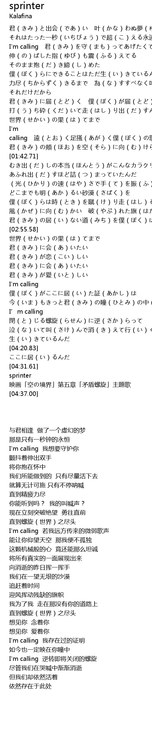 | [04:35.00] | 映画「空の境界」第五章「矛盾螺旋」主題歌 |