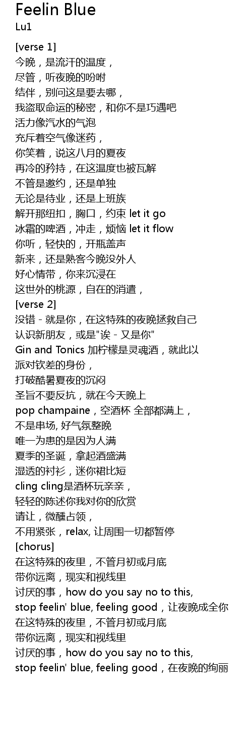 | stop feelin' blue, feeling good,让夜晚成全你 | |