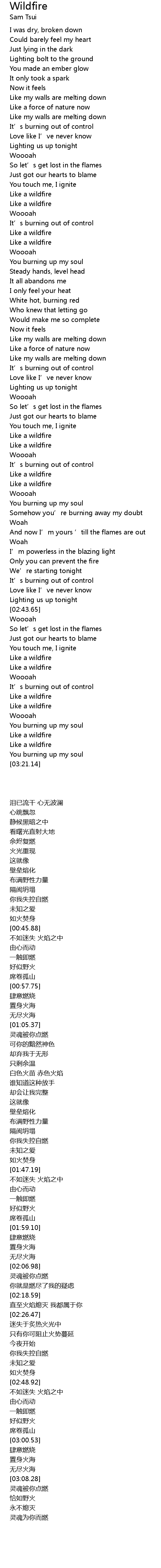 | [03:04.77] | Like a wildfire |