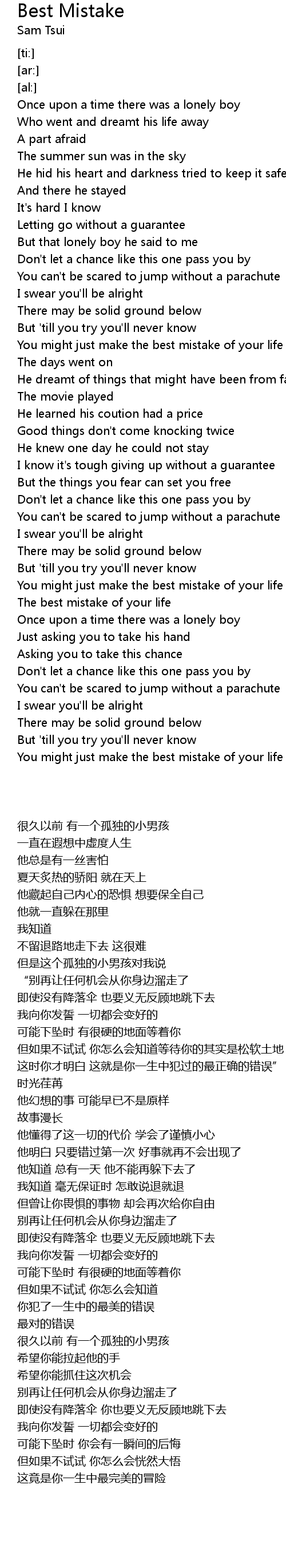 | [00:22.04] | Once upon a time there was a lonely boy |