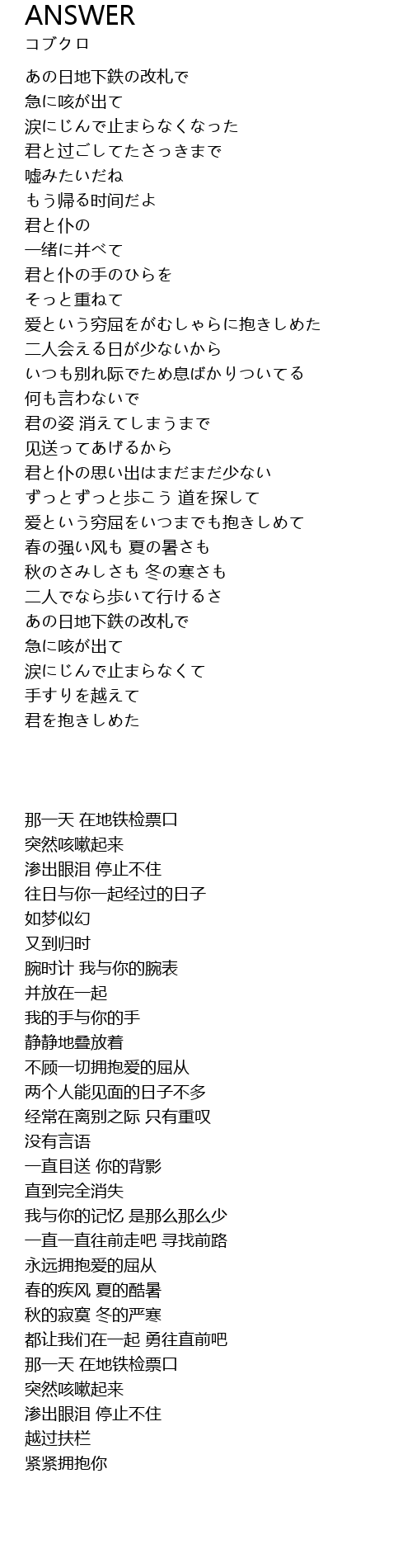 | [00:18.060] | あの日地下鉄の改札で |