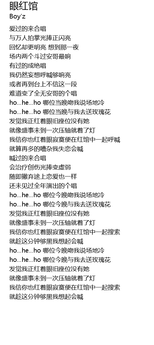 | [03:04.92] | ho... he... ho nǎ wèi jīn wǎn wěn wǒ shuō chǎng dì lěng |