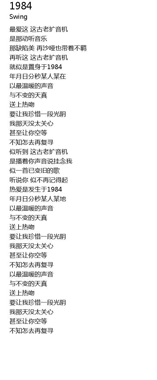 | [00:22.35] | jiù shì shì zhì shēn yú 1984 |
