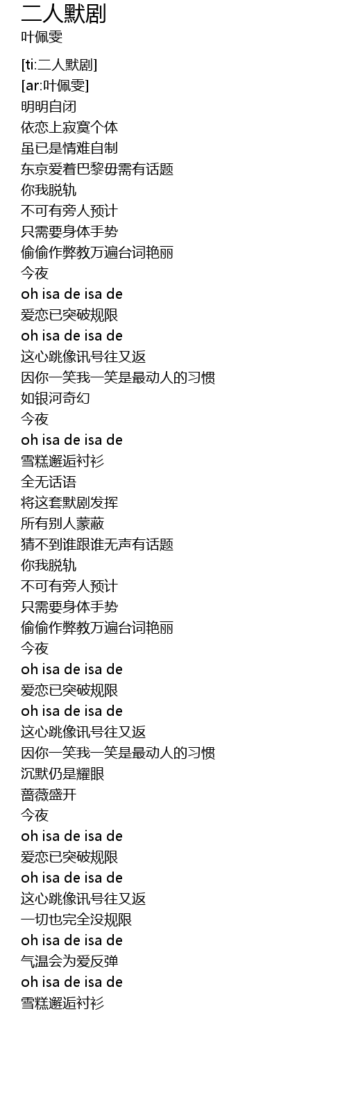| [00:29.154] | 东京爱着巴黎毋需有话题 |