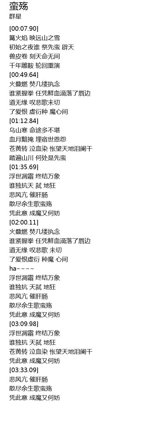 | [03:01.87] | 散尽余生歌蛮殇 |