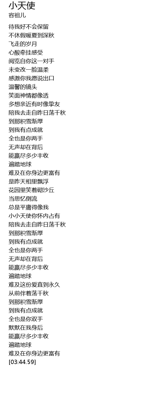 | [02:36.77] | xiǎo xiǎo tiān shǐ nǐ huái nèi zhàn yǒu |