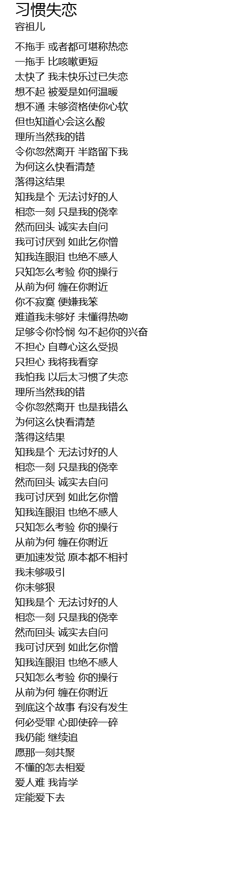 | [01:37.18] | 我怕我 以后太习惯了失恋 |