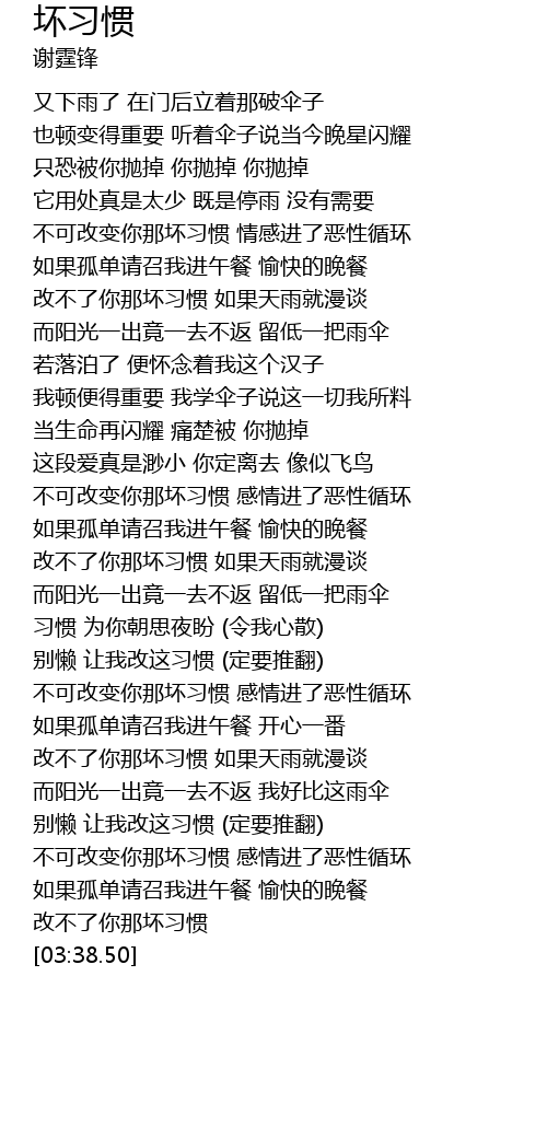 | [02:18.50] | 改不了你那坏习惯 如果天雨就漫谈 |