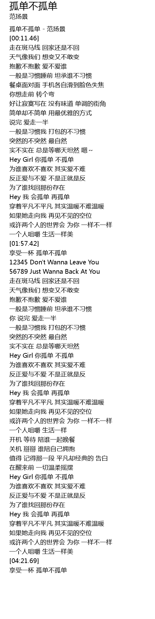 | [02:43.53] | Hey Girl 你孤单 不孤单 |