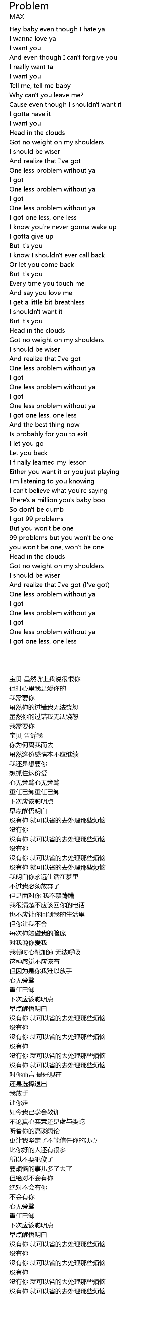 | [01:41.75] | One less problem without ya |