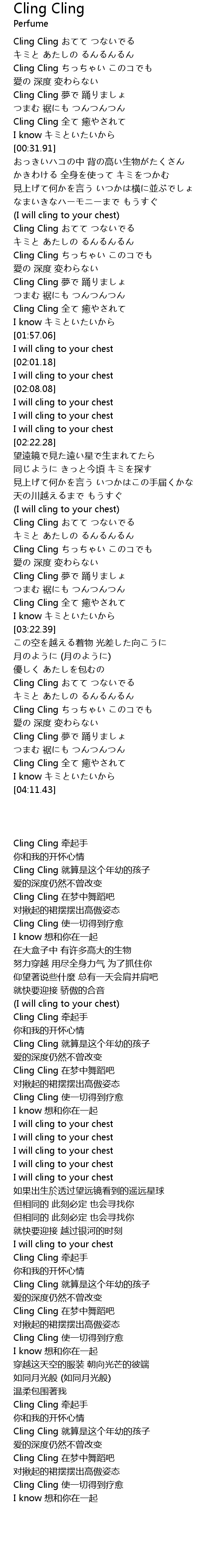 | [01:50.01] | Cling Cling 全て 癒やされて |
