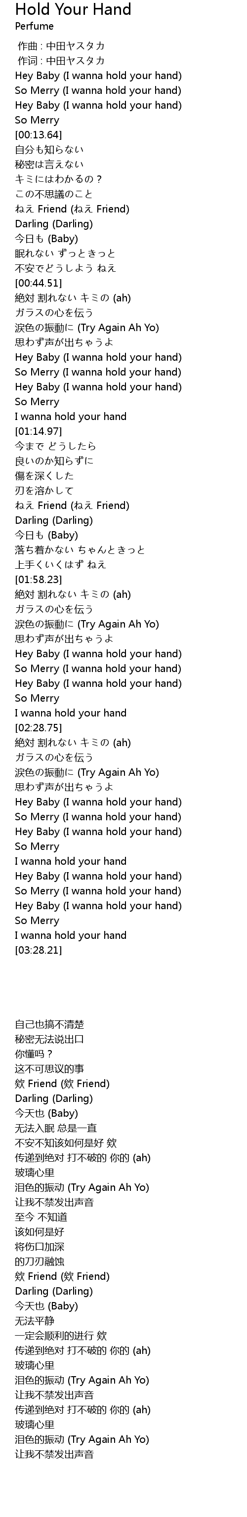 | [03:19.26] | Hey Baby I wanna hold your hand |
