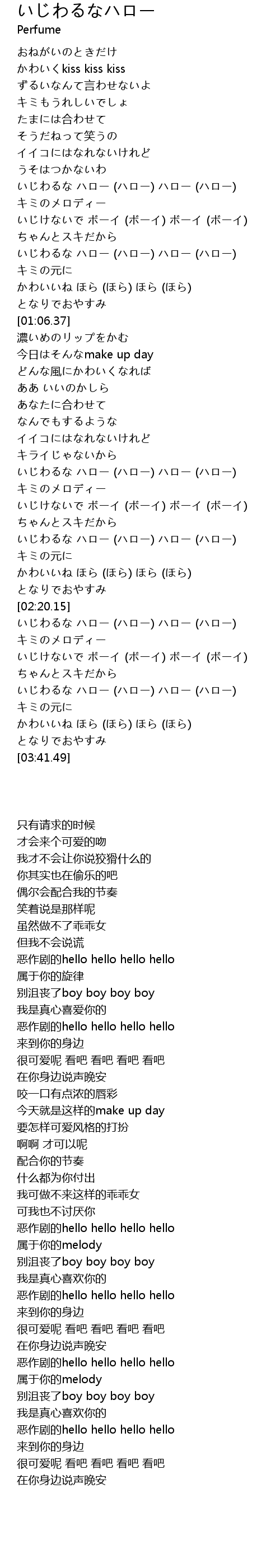 | [03:26.50] | いじわるな ハロー (ハロー) ハロー (ハロー) |