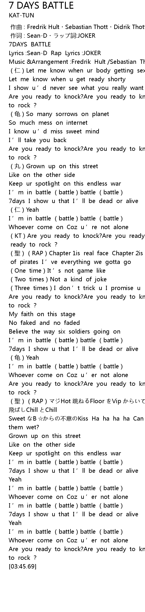 | [01:12.90] | 7days I show u that I ' ll be dead or alive |
