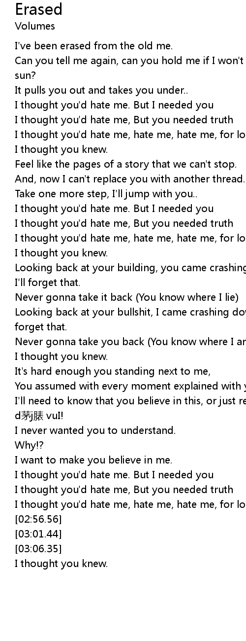 | [02:42.16] | I thought you'd hate me, But you needed truth |