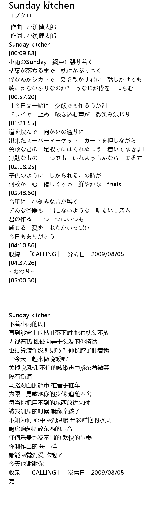 | [04:32.08] | 収録:「CALLING」 発売日:2009/08/05 |