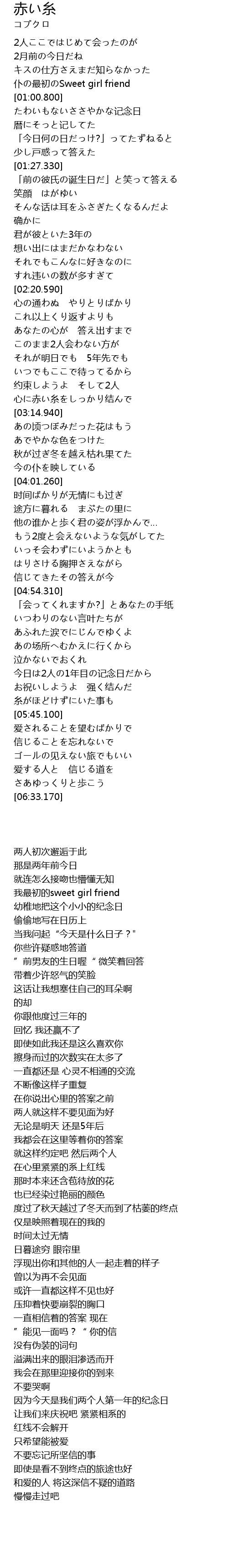 | [03:06.100] | 心に赤い糸をしっかり结んで |
