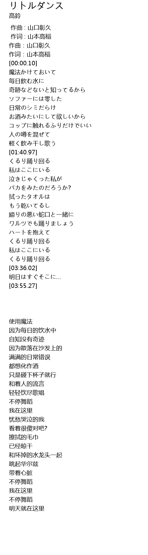 | [00:00.00] | 作词 : 山本高稲 |