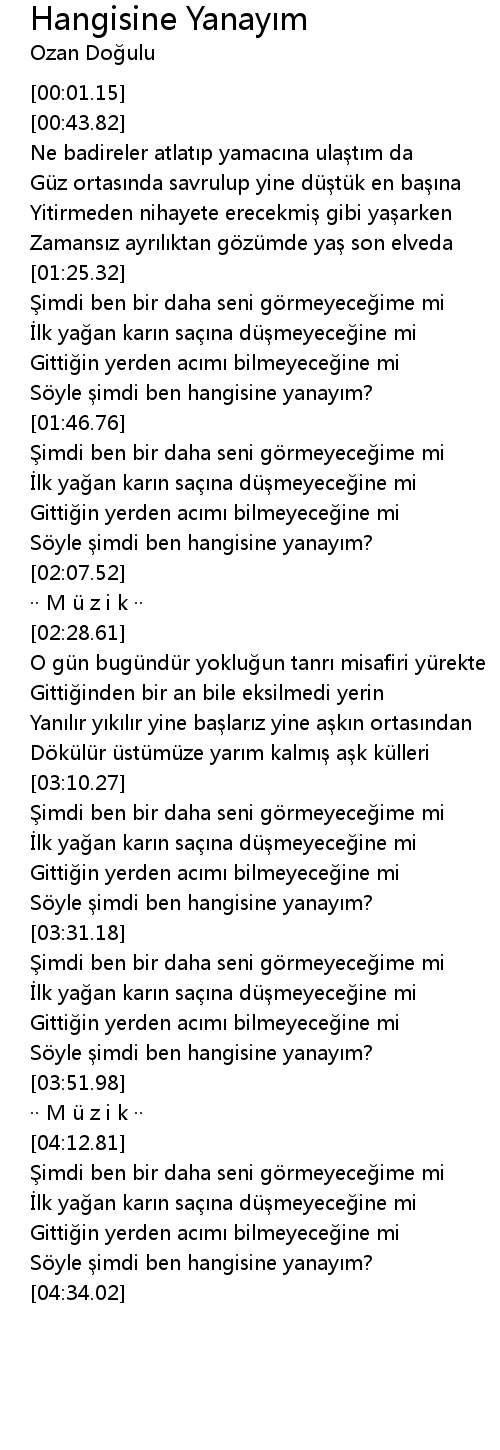 | [04:12.99] | imdi ben bir daha seni g rmeyece ime mi |
