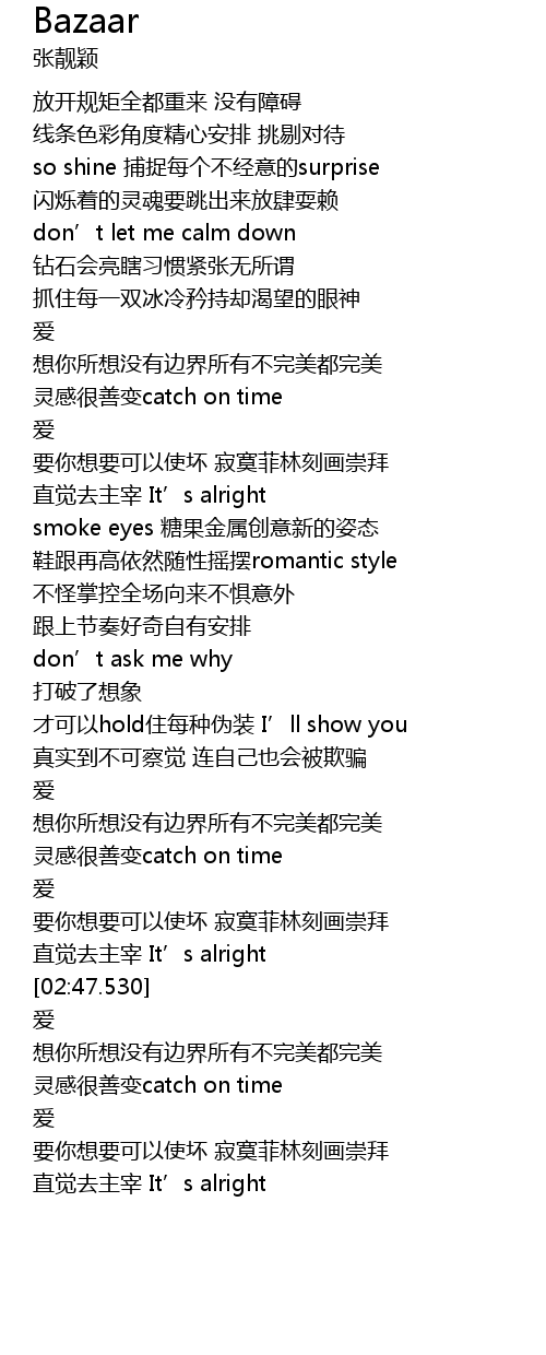 | [02:39.650] | zhí jué qù zhǔ zǎi It' s alright |